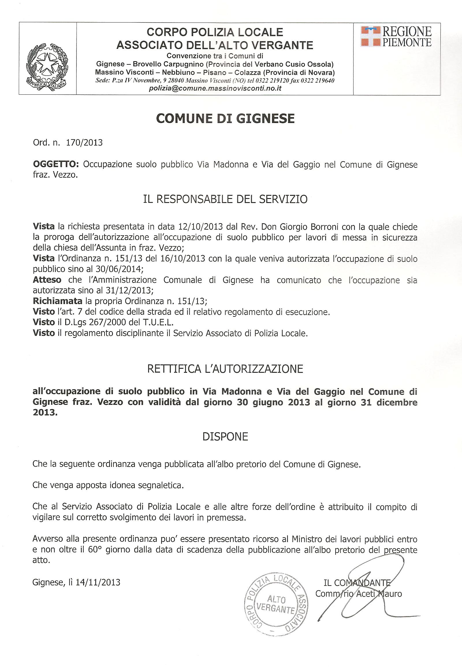 Documento albo pretorio > Atto amministrativo > Ordinanza > Ordinanza del Sindaco