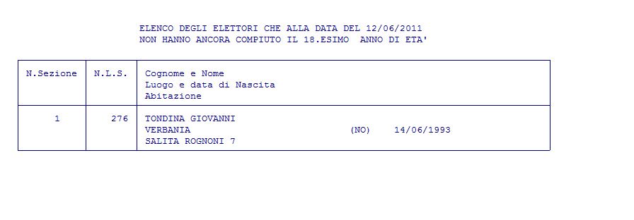 Elenco dei cittadini che, pur compresi nelle liste elettorali, non avranno compiuto, nel giorno fissato per le elezioni, il 18esimo anno di età.